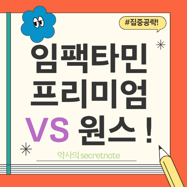 안녕하세요, 약사의 시크릿노트 대웅제약의 임팩타민프리미엄정과 임팩타민원스정에 대해 가장 궁금해 하시는 성분, 가격, 복용법을 비교정리해 보겠습니다.