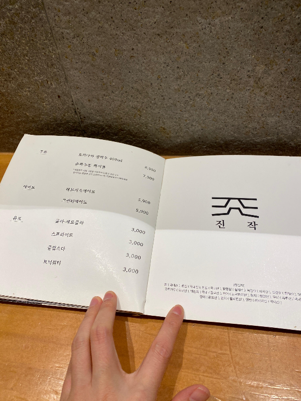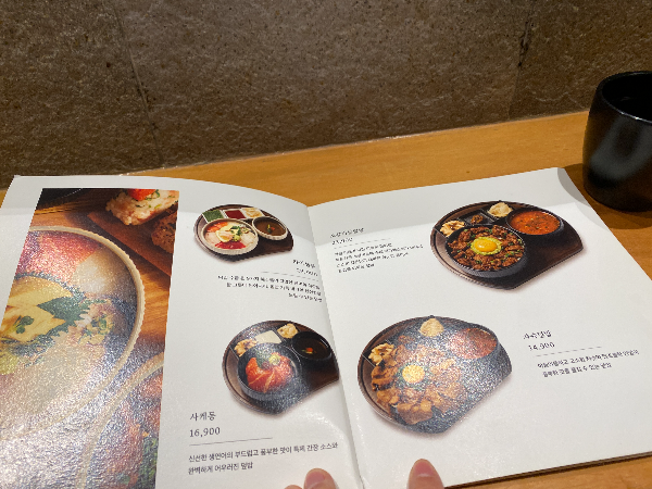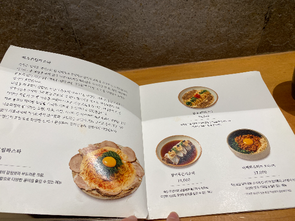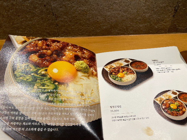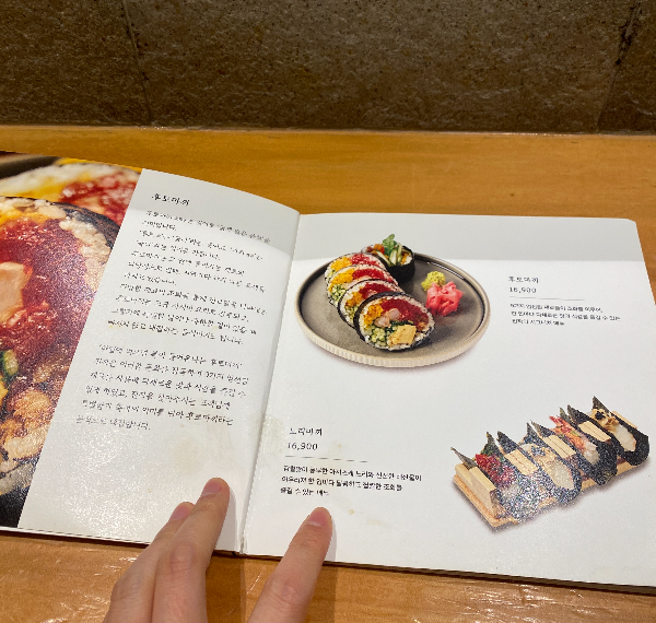 테이블에 앉았는데 메뉴판에 너무 정성스럽게 음식소개가 있어서 좋았습니다.