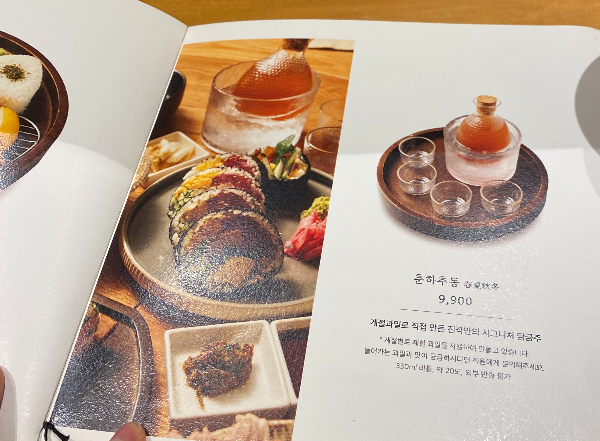 제일 먼저 춘하추동이란 술이 나왔습니다. 봄여름가을겨울은 한 병에 담은 직접 담그신 술인데 도수가 20도나 되더라고요!
